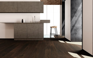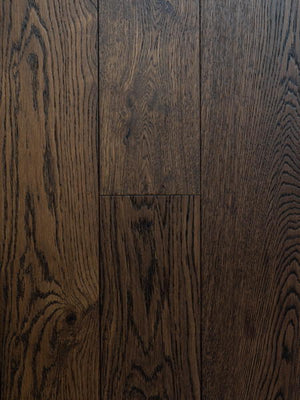 1900x190x14/2mm Walnut oak engineered flooring is a type of flooring featuring a 2mm thick top layer of real walnut oak over a multi-layered, engineered core, with a total plank thickness of 14mm. This durable and stable flooring is available with a matte light brushed finish, suitable for domestic use and features a natural grade with rustic variations, knots, and character-rich grain