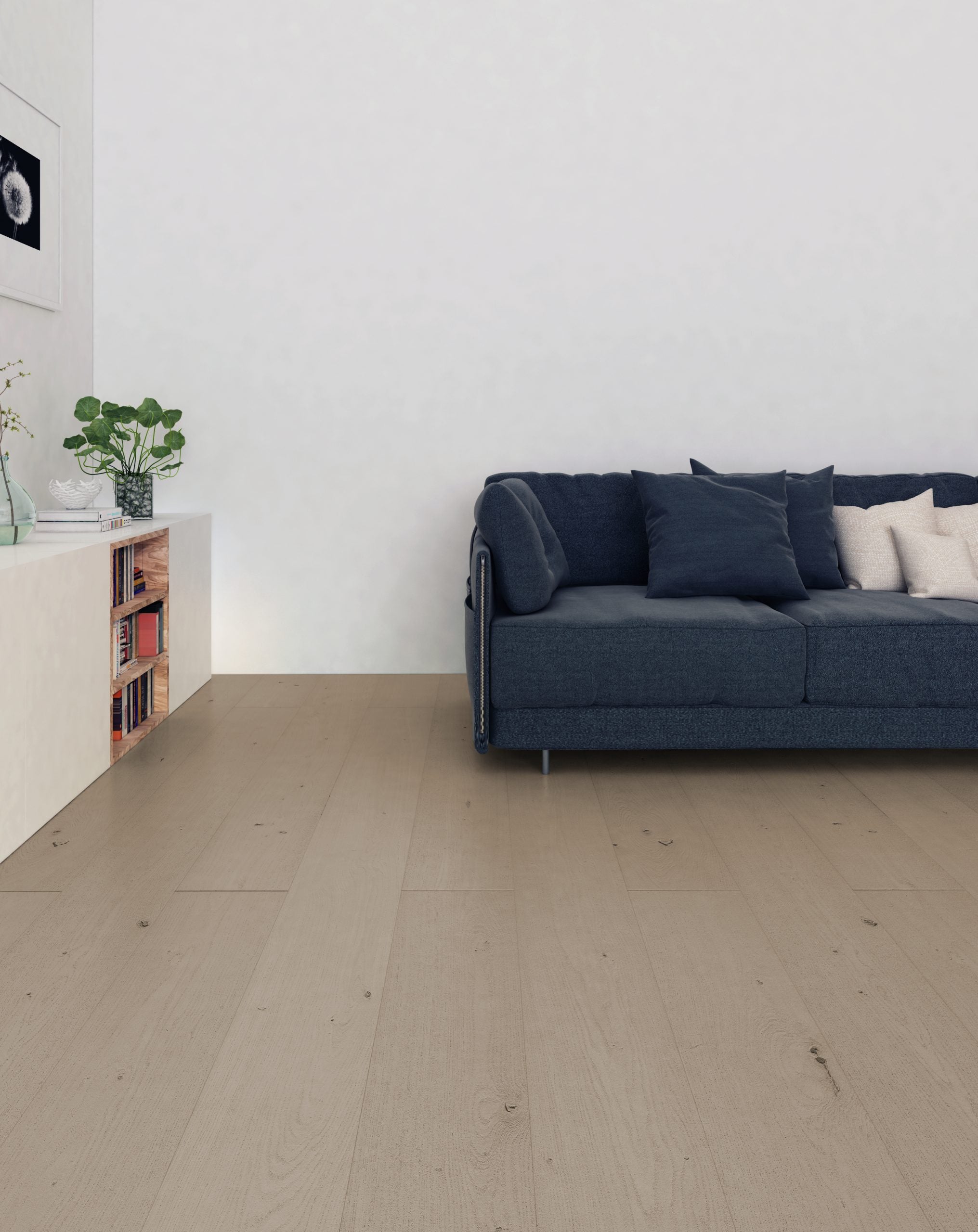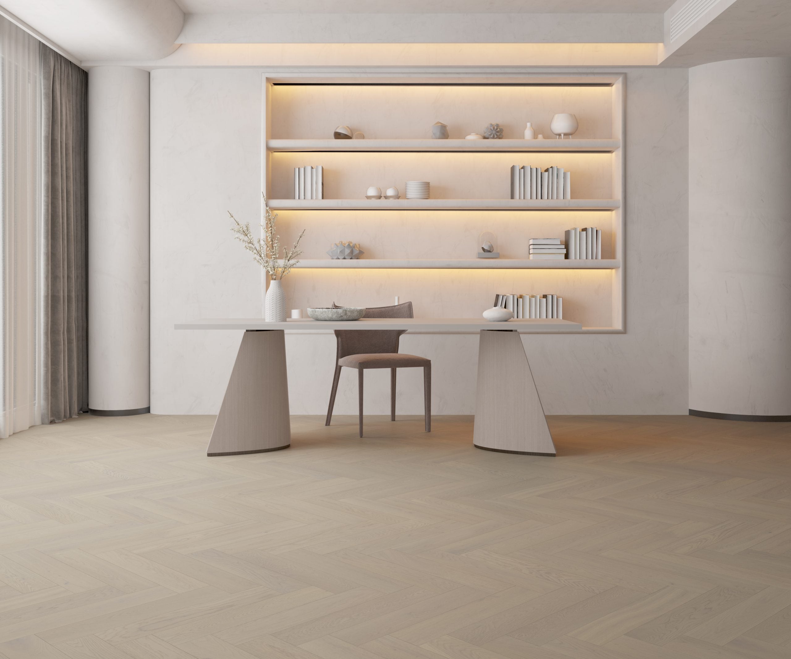 “Casper White” engineered oak flooring, size 1900 × 190 × 15/3 mm, model 21009-UB, is a sleek and modern timber flooring choice. Each carton covers 2.888 m² (with 5 planks) The product features a 3 mm wear layer and a total thickness of 15 mm, making it durable enough to handle household traffic while retaining the aesthetic warmth of oak. Its micro-bevel edging helps create subtle shadow lines between boards for visual depth. The surface is treated with a 13-layer coating system to resist scratches, wear and moisture. In terms of installation flexibility, the flooring can be floated, glued down, or nailed, accommodating different subfloor types, making it a sturdy and attractive option for both residential.