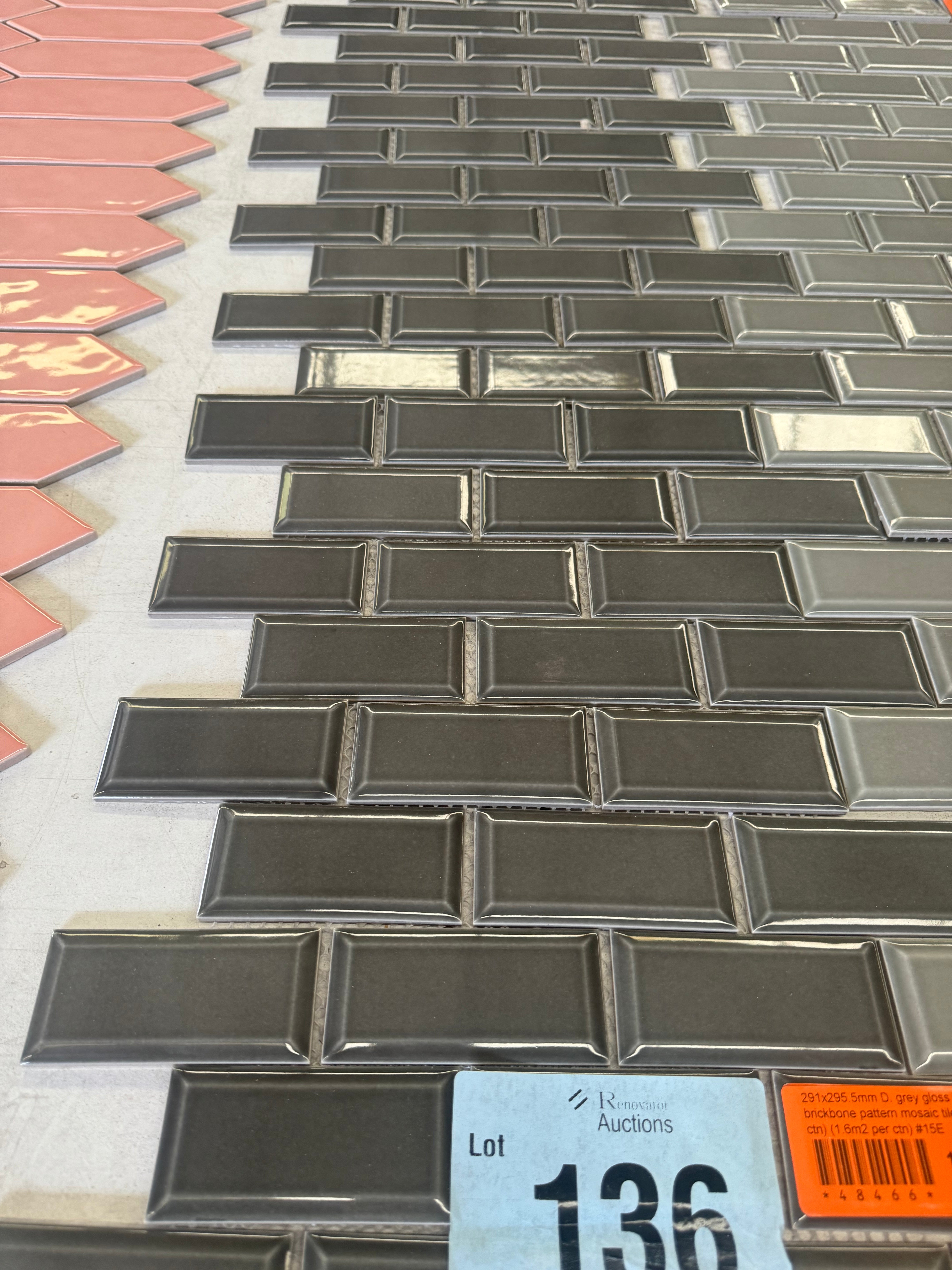 Carton of 18 sheets 291x295.5mm Deep grey gloss porcelain mosaic tile $6 SHEET (Pick up only).