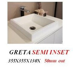 350mm Square Greta Semi Insert Pebble look Stone Basin (Pick up only)