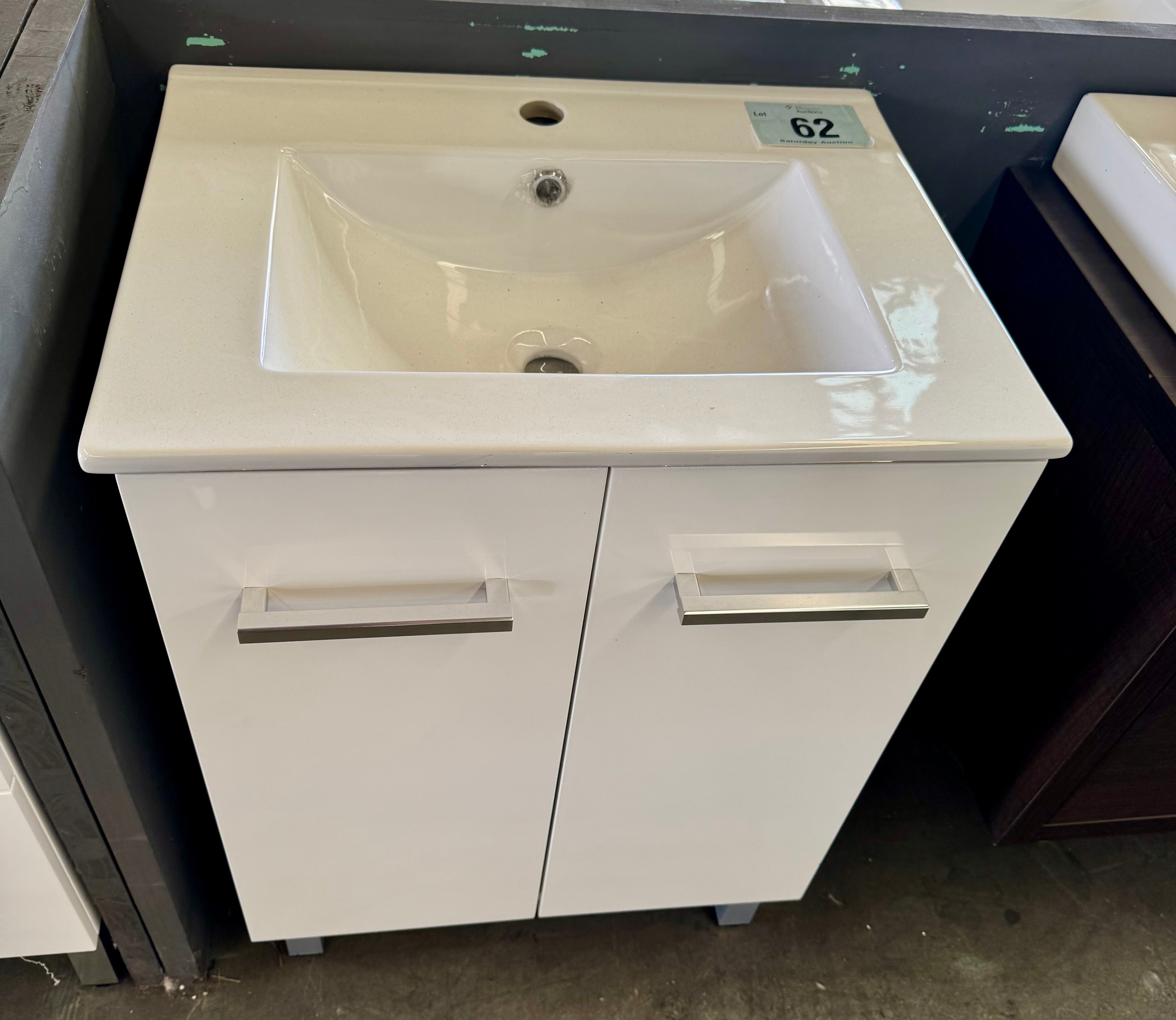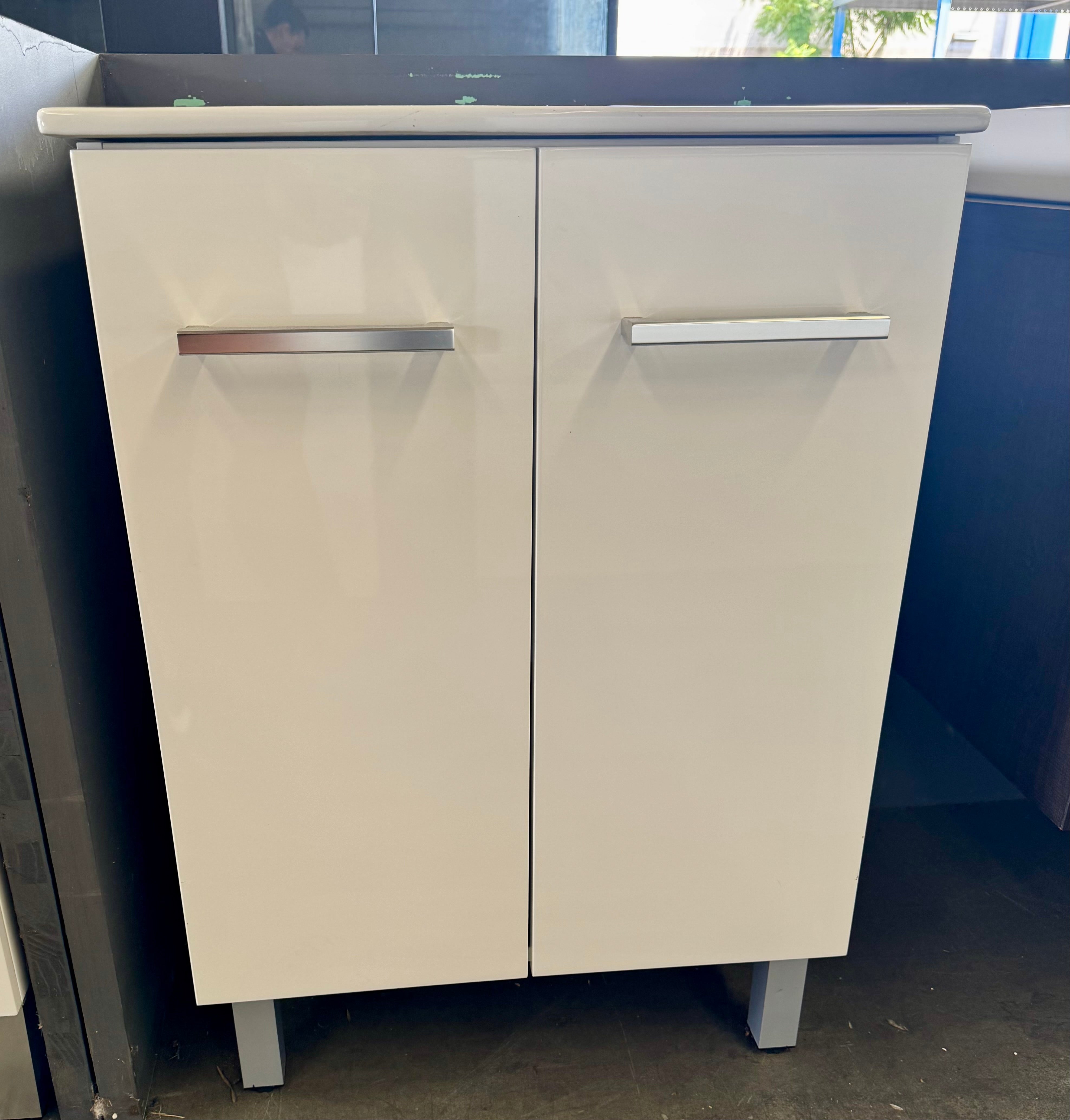 The 600mm Encore white gloss vanity offers both functionality and style. Featuring two spacious doors, it provides ample storage space for your bathroom essentials, helping you keep your ensuite organized and clutter-free. The white porcelain top not only adds a touch of elegance but also offers durability and easy maintenance. This vanity's sleek white gloss finish complements modern bathroom aesthetics, while its thoughtful design ensures it seamlessly integrates into your bathroom space. Elevate your bathroom's appeal with this versatile and attractive piece that combines practicality with a clean and contemporary look.