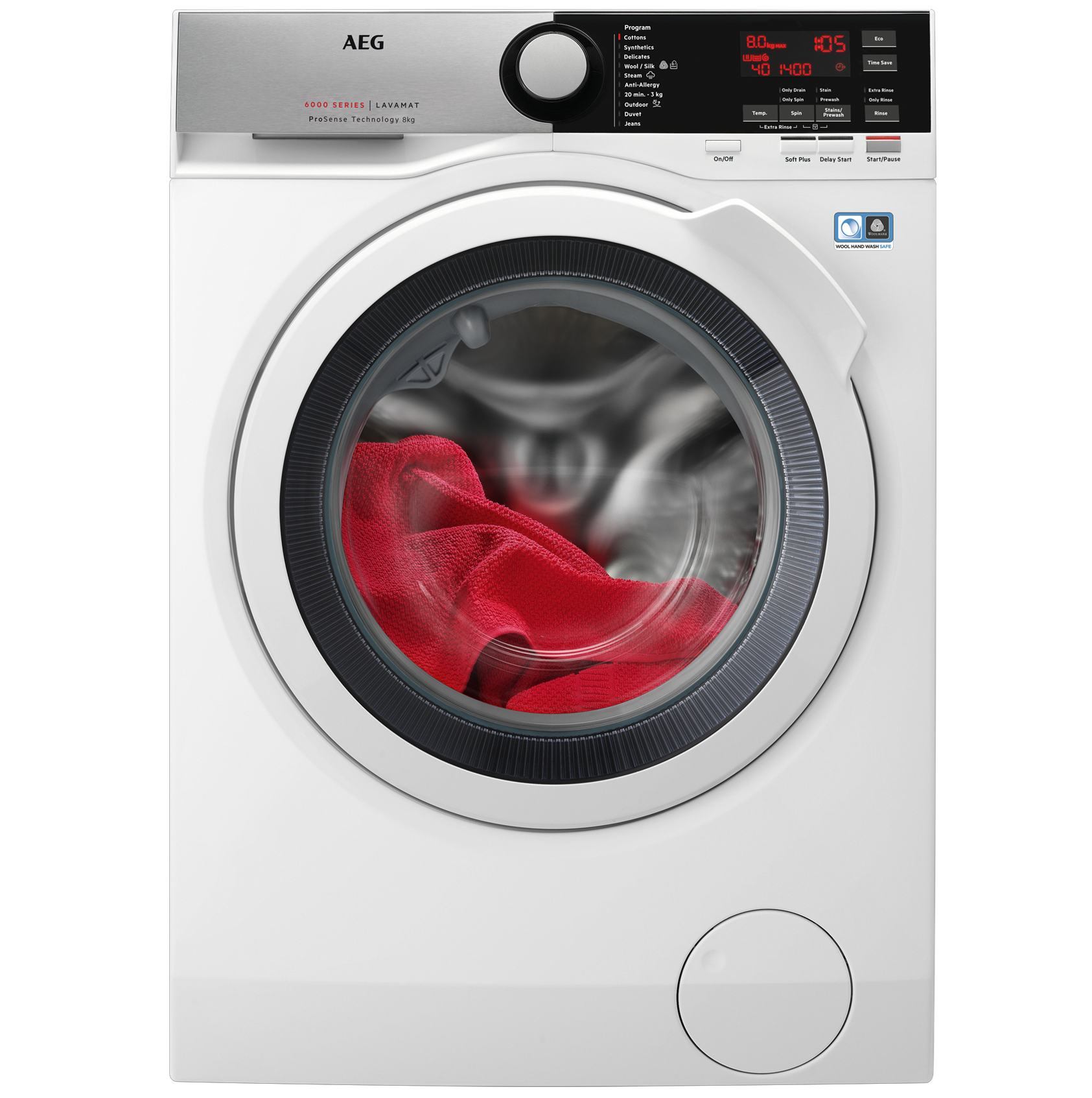 AEG 8kg 6000 series front load washing machine with 1400 spin speed, ProSense, Woolmark Blue accreditation, Ultra quick program, KOInverter Motor, time Save, aqua Control System, XXL Door, Anti-allergy program, Silk and wool program.