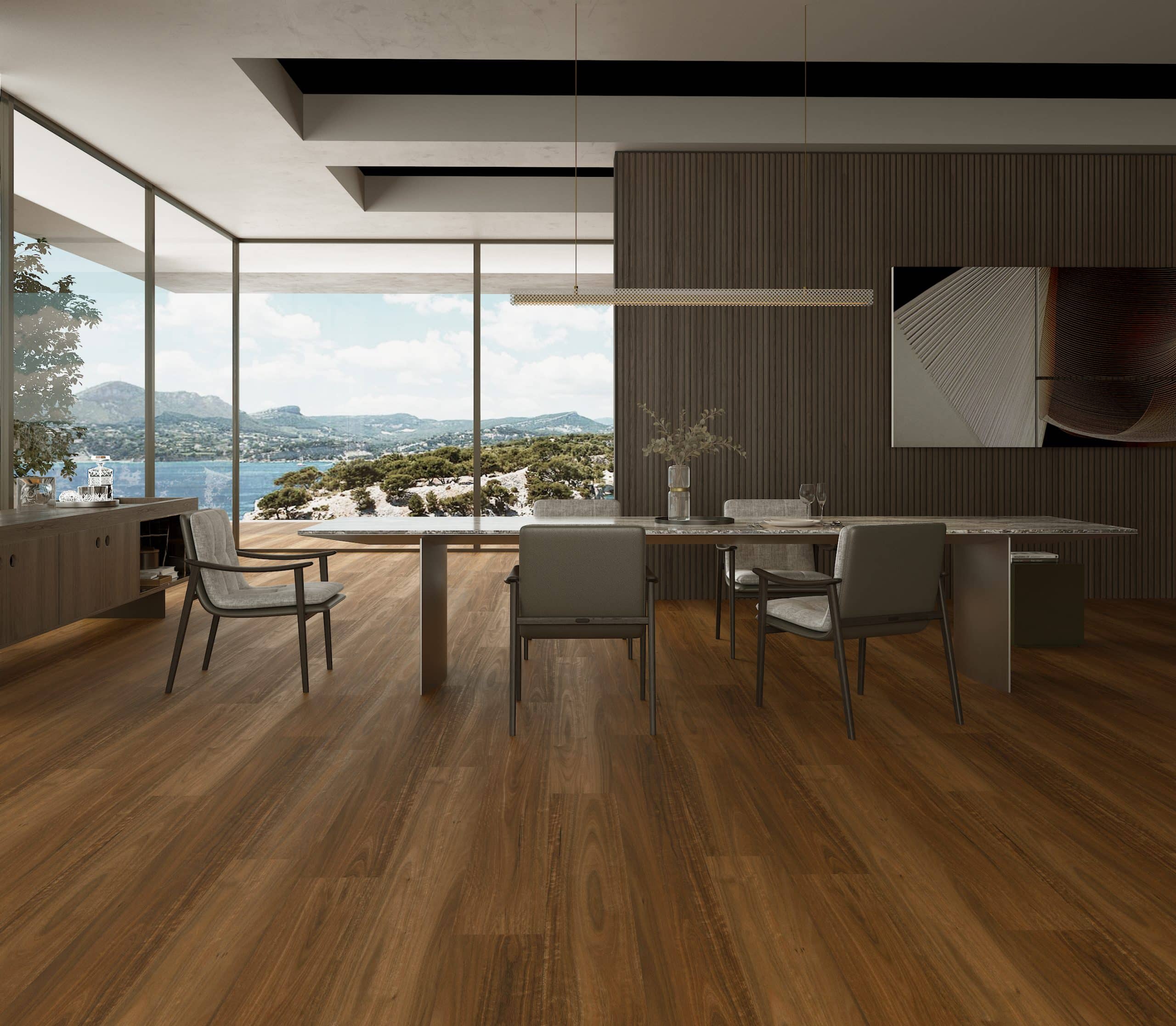 1540x228x5.5mm Classic Spotted Gum Hybrid flooring, a harmonious blend of aesthetics and resilience. This flooring option encapsulates the timeless charm of Spotted Gum with modern technology, providing a durable and visually appealing solution. The 5.5mm thickness strikes a balance between sturdiness and comfort underfoot. Its innovative hybrid composition offers the best of both worlds: the natural beauty of hardwood and the durability of synthetic materials. With a classic appeal that complements various interior styles, Classic Spotted Gum Hybrid flooring stands as a testament to sophistication, making it a remarkable choice for elegant and enduring interiors.