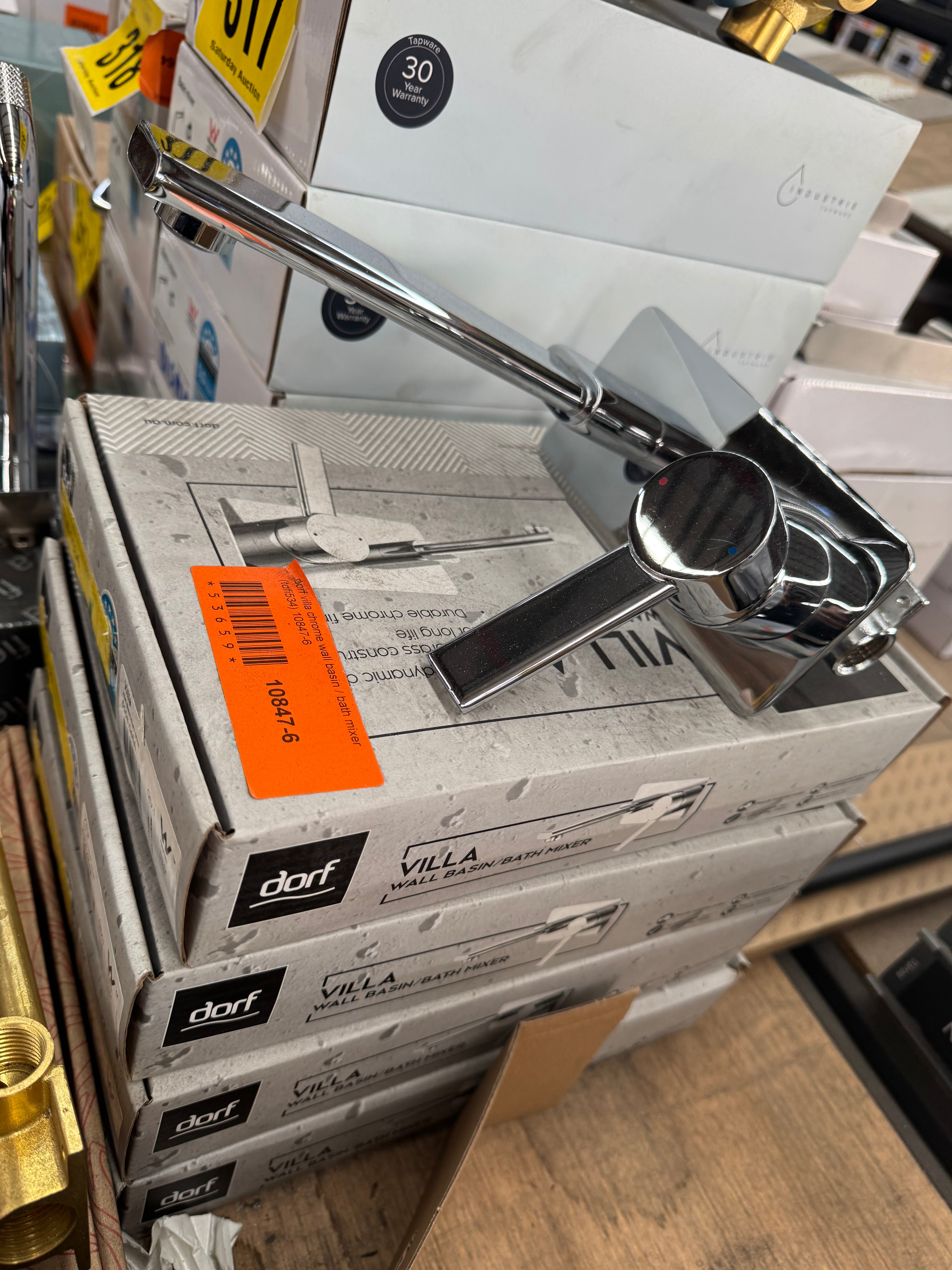 The Dorf Villa Chrome wall-mounted mixer (model 6906.45A) combines timeless elegance with practical versatility, suitable for either basin or bath installation. Its refined chrome finish sits atop robust solid brass construction, offering enduring reliability and resistance to corrosion. Villa’s signature design features gentle upswept angles softened by flattened, rounded lines to evoke classic sophistication Engineered for efficiency, it boasts a 5‑Star WELS rating with a low flow rate of 6 L/min, and includes an unrestricted aerator for bath use. Maintenance is effortless thanks to a silicone‑based aerator insert that minimizes limescale buildup. Installation is streamlined with Dorf SureFit technology and tool‑free mounting. this mixer delivers refined performance and lasting style.