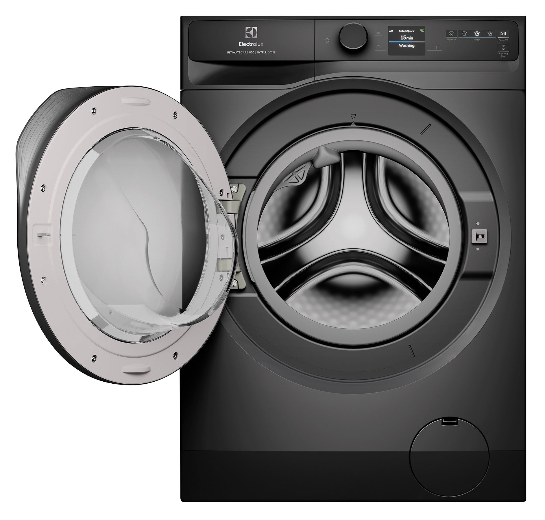 Electrolux 12 kg UltimateCare 900 Front Load Washing Machine (EWF1242R9SC) in Dark Onyx: Discover laundry made smarter with this 12 kg front-loading washer from the UltimateCare 900 series. It features the IntelliDose system which uses sensors to deliver precisely the right detergent dose for each load, helping avoid waste and over-soaping. Its UltraMix technology thoroughly dissolves detergent and softener before they reach the drum — so you don’t end up with visible residue on your clothes. The intuitive SmartSelect interface lets you tune wash settings like time, temperature and intensity to suit the fabric and your schedule — supporting energy, water and time savings. With robust features like 1400 rpm spin, a 12 kg capacity, and a stylish Dark Onyx finish, it’s a great choice for busy households. The unit includes a 12-month parts and labour warranty for peace of mind.
