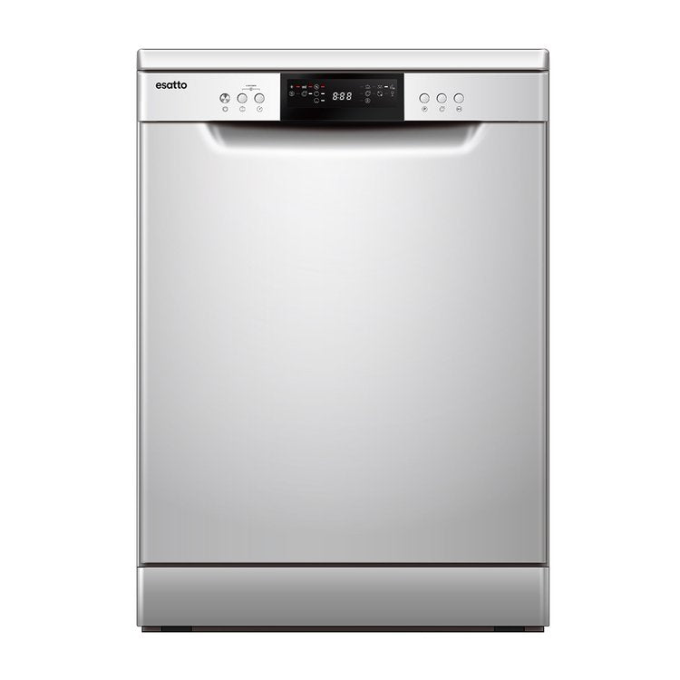 The Esatto EDW7CS is a 60cm freestanding dishwasher that combines modern design with practical functionality. Its sleek stainless steel finish complements any kitchen decor, while the 14 place setting capacity makes it ideal for families and entertainers alike. A standout feature is the third-level cutlery drawer, which offers organized storage and improved cleaning for utensils. This dishwasher boasts seven wash programs, including intensive, eco, and rapid cycles, catering to various cleaning needs. The Extra Drying function ensures dishes come out spotless and dry. User-friendly features like the LED display with a 1–24 hour delay start timer, height-adjustable upper baskets, and collapsible plate racks provide flexibility and convenience. Backed by a 2-year parts and labour warranty, the Esatto EDW7CS offers reliable performance and peace of mind.