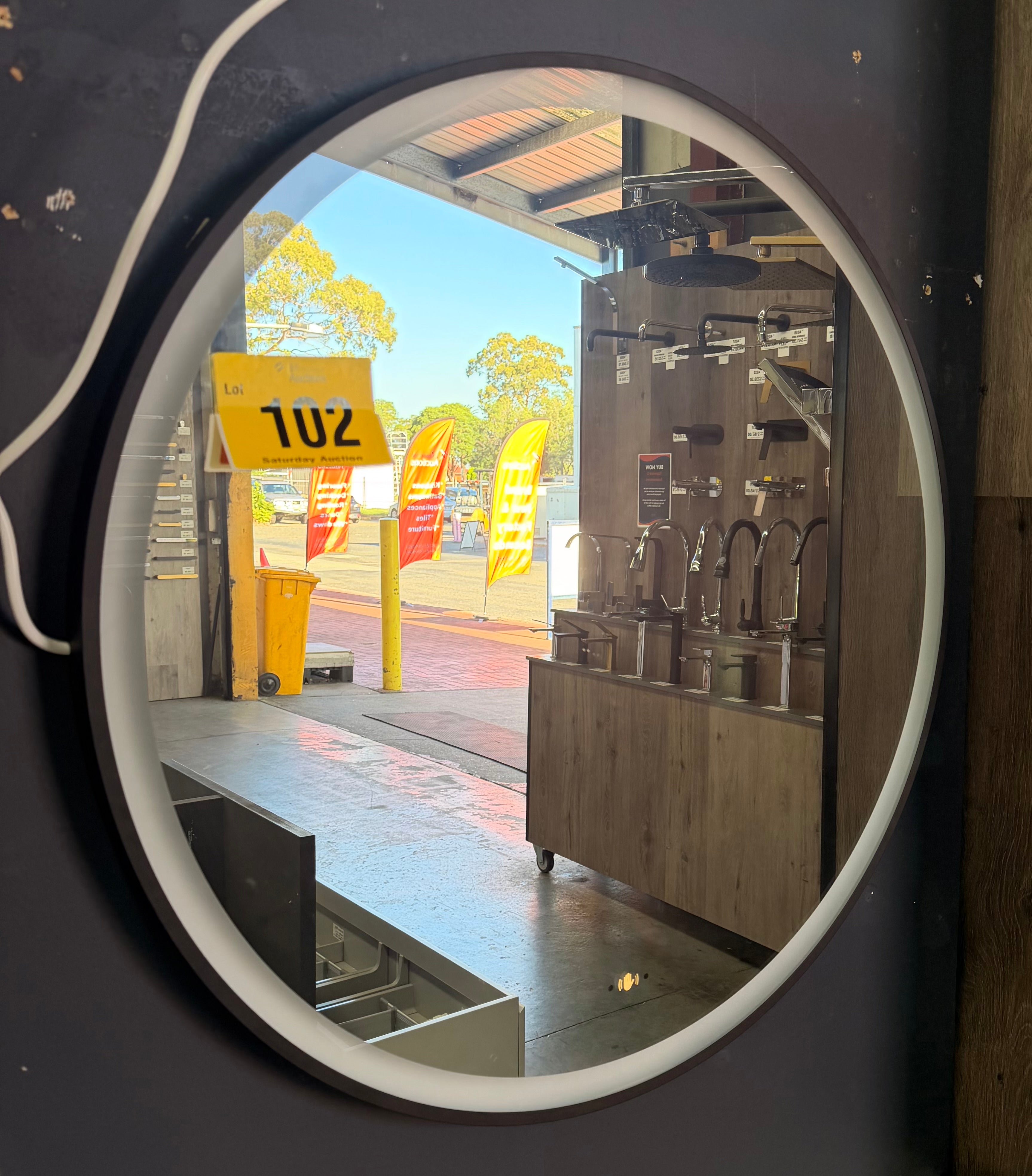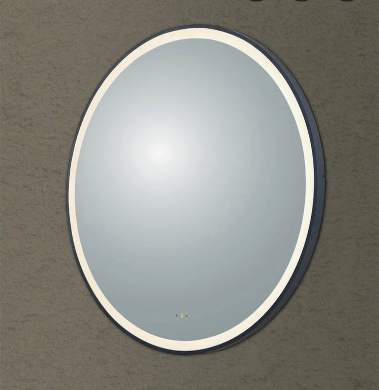 Luna 800mm Matte Black framed LED round mirror (Pick up only)