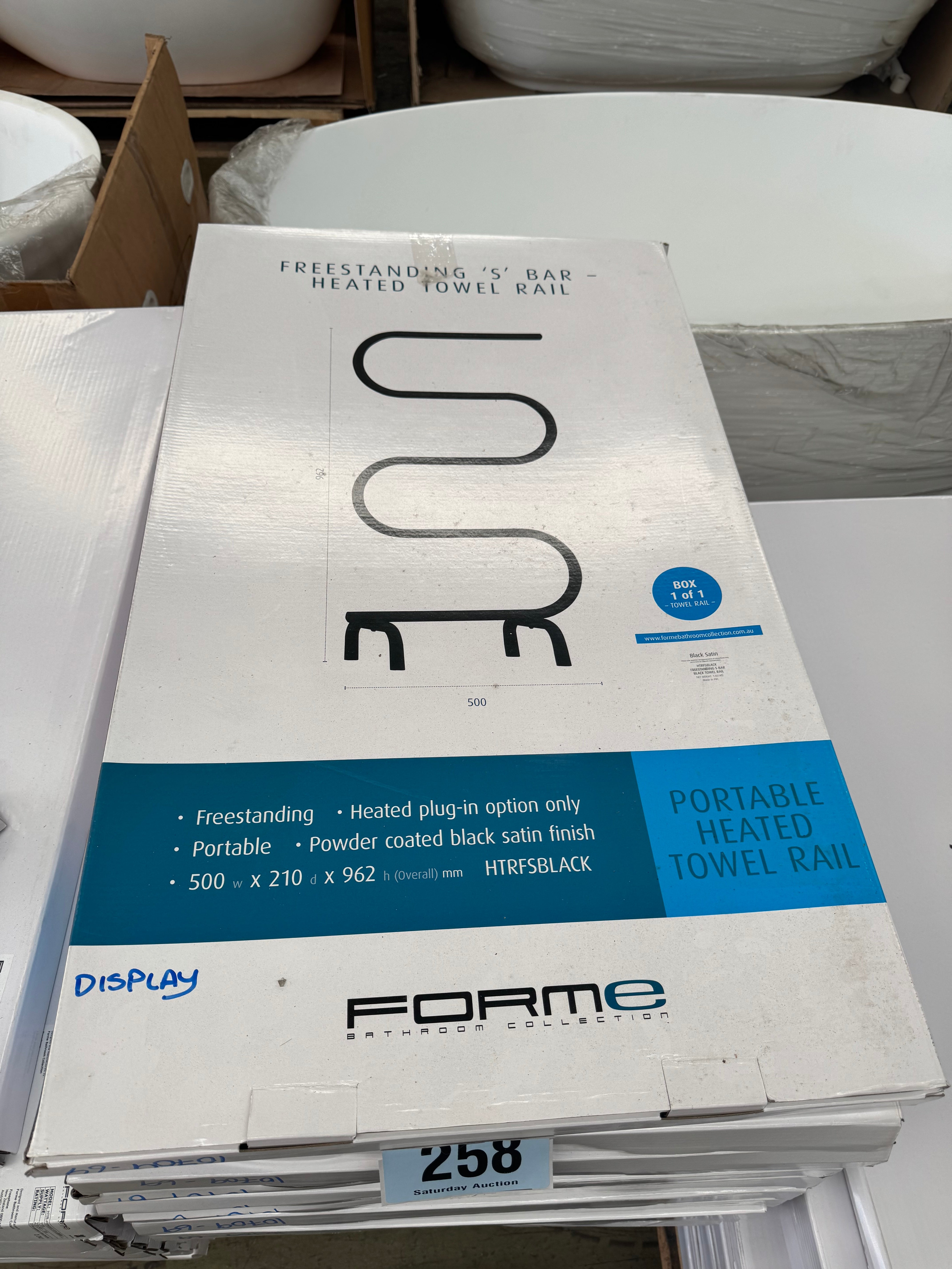 Satin black freestanding S-bar heated towel rail (Pick up only)
